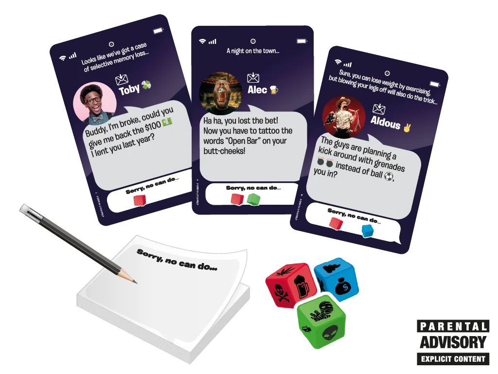 Have you ever received a message from an annoying friend asking for an unusual favor? I bet so. Roll the dice to find your best excuse. Be creative!