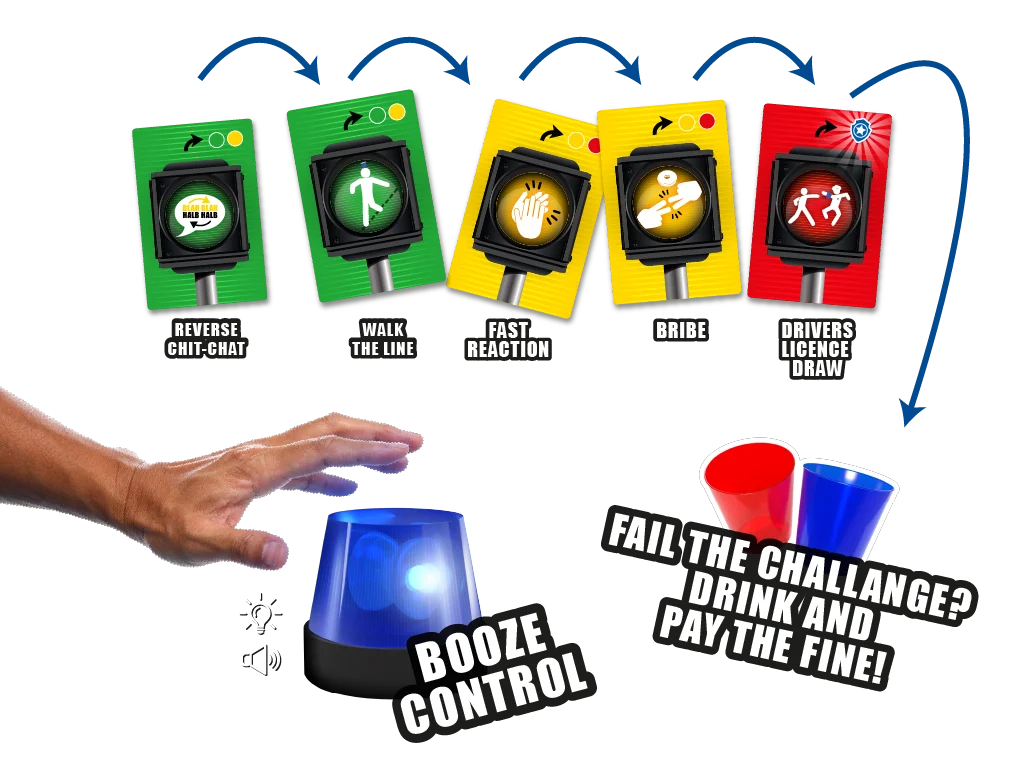 3. No playable card? Say “STOP!” and do a BOOZE CONTROL challenge… or bluff by playing a card face down and hope others trust your word.