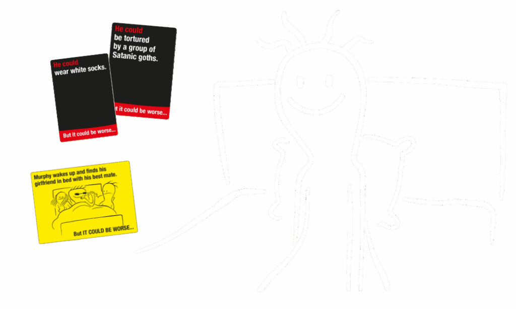 Each player takes the role of judge once per game. It’s up to them to string the miseries together coherently… or lose the round if they fail to do so. Whoever tells the best story wins.