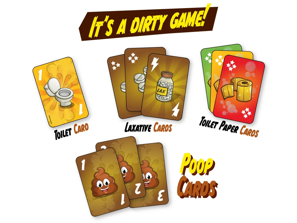 Avoid poop and laxative cards; score negative points with toilet paper. The first to 100 points loses.