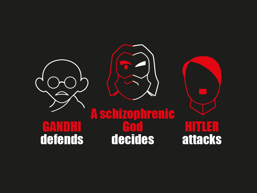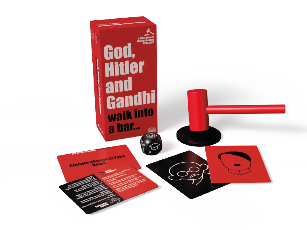 3. God reads a Debate Card aloud and assigns Team Gandhi (defence) and Team Hitler (attack).