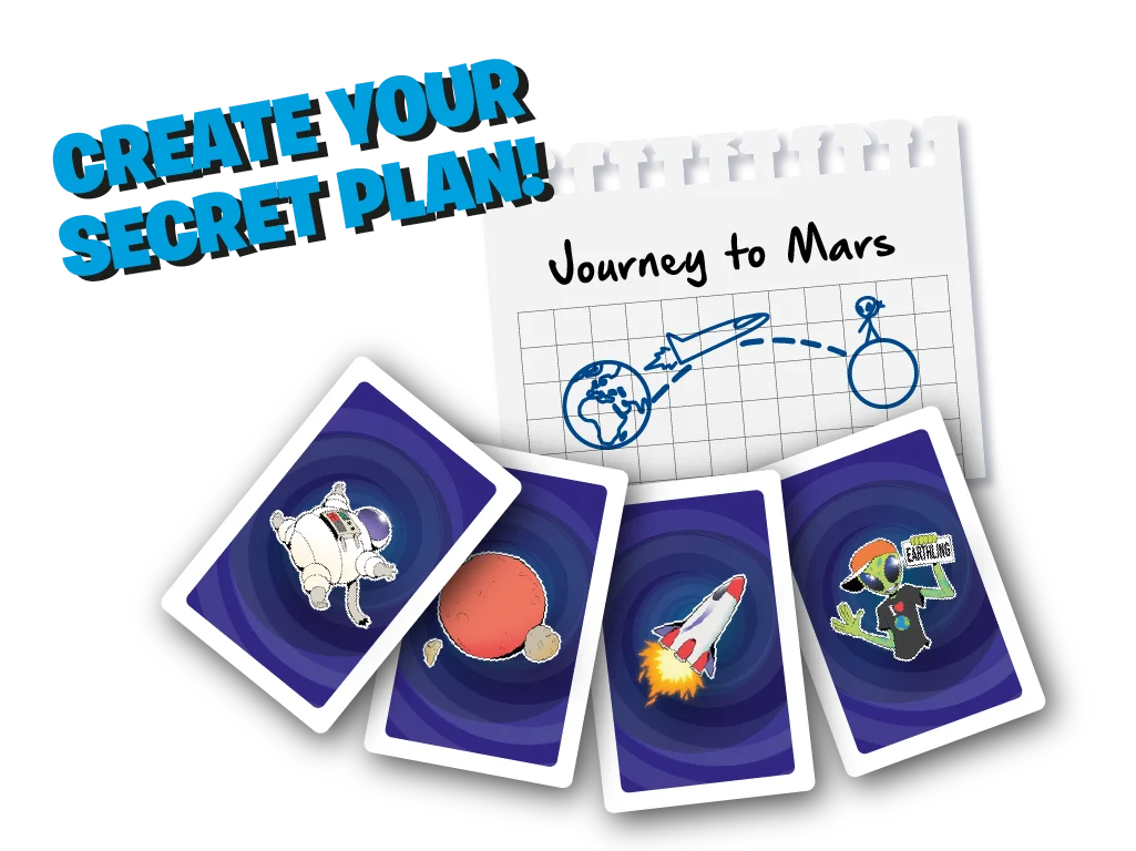 Be the first team to score 20 points by completing or exposing secret plans during rounds.