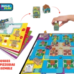 2. Set up the board mounting the city buildings and you’re ready to roll!