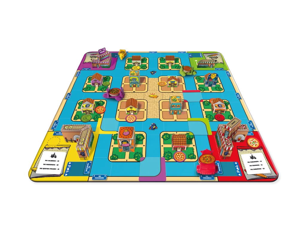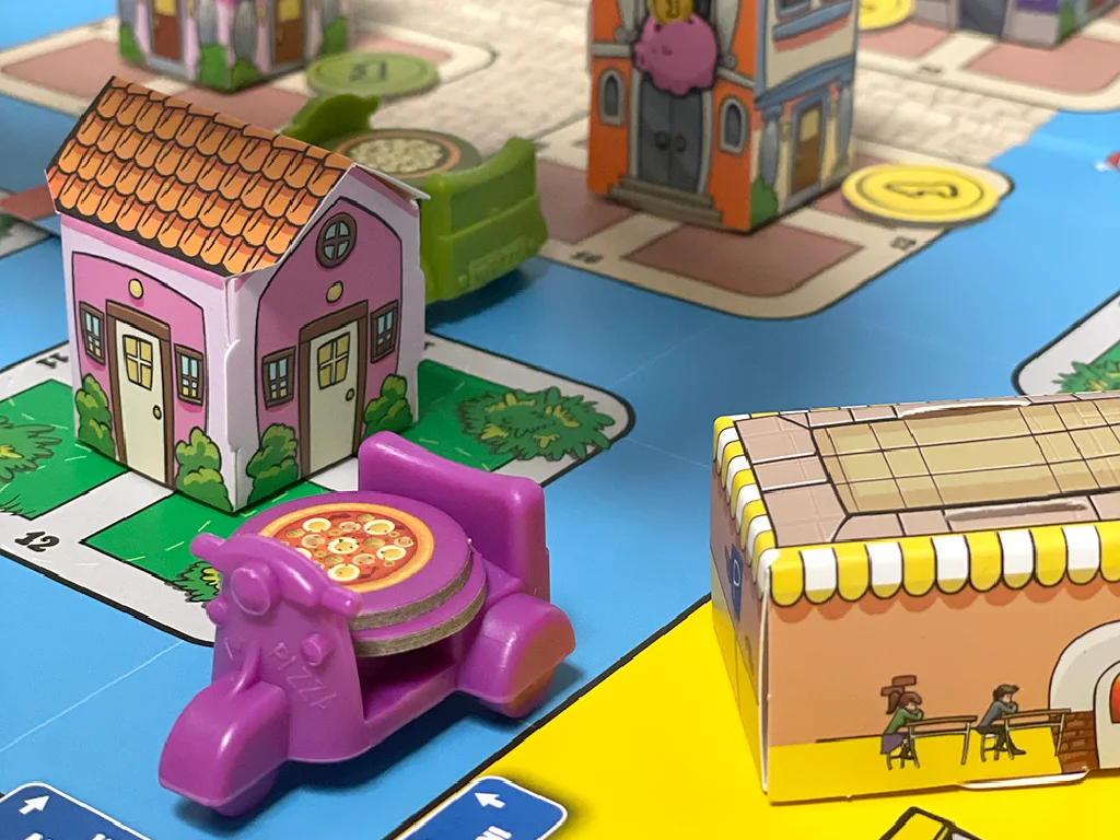 Deliver pizzas and dodge crossroad cards in a race to grow your pizzeria to the top!
